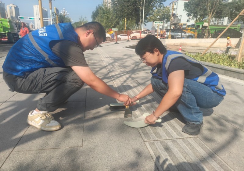 活動自9月4日起為期六天,覆蓋迎澤大街(西段)全線,重點圍繞附屬設(shè)施清潔與道路精細(xì)化維護(hù)展開?;顒又?,身著統(tǒng)一藍(lán)色“太原市政集團(tuán)”馬甲的志愿者們,手持長柄擦洗器、水桶、抹布、鏟刀、掃帚等工具,對道路兩側(cè)公交站臺、路燈基地、護(hù)欄、照明燈桿等設(shè)施進(jìn)行系統(tǒng)清理與擦洗;同步推進(jìn)地磚灌縫精細(xì)化維護(hù)作業(yè),通過專業(yè)操作,確保每一條裂縫都“嚴(yán)絲合縫”,有效提升路面耐用性與通行舒適度,以實際行動為市民出行安全與舒適保駕護(hù)航;同時,志愿者專門對道路沿線的石頭字景觀展開描金作業(yè),細(xì)刷蘸取金色涂料,一筆一畫精心描摹,成為主干道上一道兼具文化氣息與視覺美感的獨特風(fēng)景。