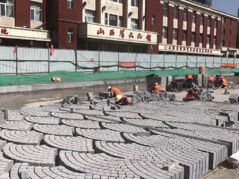 在二公司承建的太原市五一廣場改造工程市政道路改造及管網(wǎng)工程的施工現(xiàn)場,廣場西路、廣場環(huán)路、廣場東路、迎澤南街四條道路正在緊鑼密鼓地進行扇形花崗巖丁石鋪裝作業(yè),一條宛如銀杏葉鋪設的美麗道路逐漸出現(xiàn)在市民眼前。