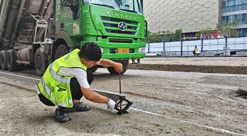 “以工匠精神,打造城市街道的靚麗名片”。項目部對所有進場花崗巖板材進行逐塊檢驗,確保板材表面平整度、缺陷指標符合設計要求,讓石材自帶“高顏值”。施工中,施工人員嚴格控制混凝土基層表面平整度偏差,確保壓實度達到95%以上;鋪貼階段采用“試鋪—校正—精鋪”的工藝流程,嚴格按配比配制干硬性水泥砂漿;鋪貼時使用橡皮錘從板材中心向四周均勻輕擊,確保砂漿飽滿密實,相鄰板材高差控制在正負1毫米以內(nèi),接縫寬度保持均勻一致。鋪裝完成后利用專用填縫劑進行嵌縫處理,并實施保濕養(yǎng)護,確保鋪裝層達到平整美觀、堅固耐用的質(zhì)量要求。