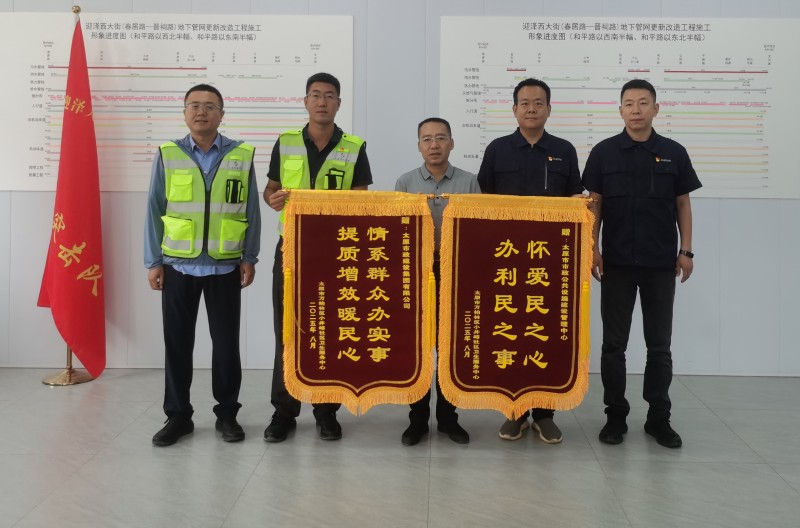 8月29日,太原市政集團收到太原市萬柏林區(qū)小井峪社區(qū)衛(wèi)生服務中心送來的 “情系群眾辦實事 提質增效暖民心”錦旗,感謝太原市政集團在迎澤大街(西段)地下管網更新改造工程以過硬的工程質量和高效的推進速度,高標準開展施工任務,極大改善附近居民的出行條件和生活環(huán)境。